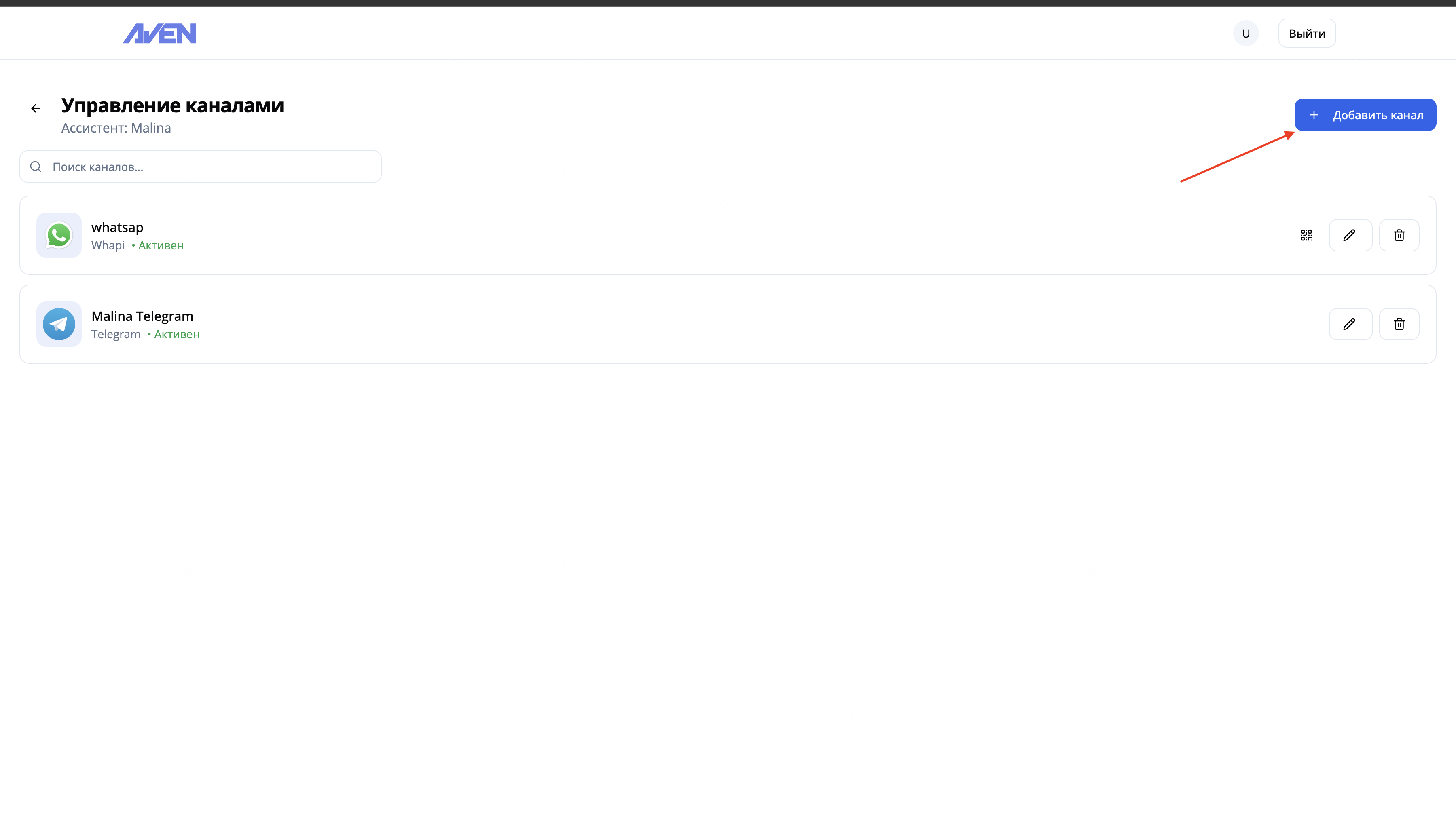 - На странице управления каналами у вас появится новый канал WhatsApp